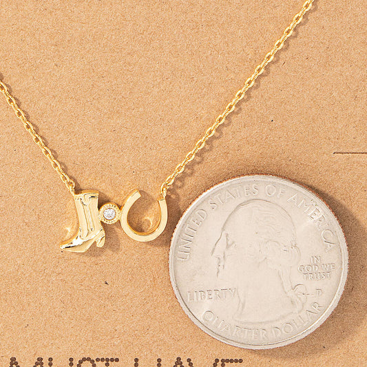 Fame Accessories - Western Cowboy Boots Horse Shoe Charm Necklace