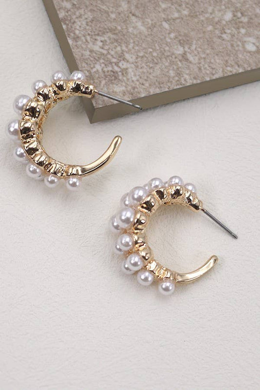 JOSSLYN by wall to wall - DOUBLE ROW PEARL HOOP EARRINGS | 80E2027